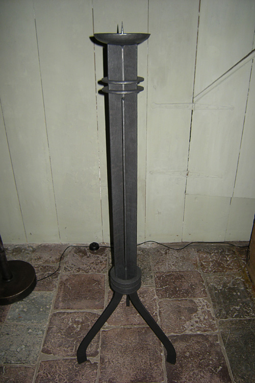 Leuchter zur WandmontageHöhe ca. 35 cm. Herausnehmbarer Kerzenhalter. Aus 12 mm Quadratstahl geschmiedet. |